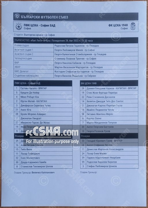 - [1] — имена игроков соперника, судьи, которых нет в нашем база данных, автоматически транскрибируются с болгарского и могут отличаться от исходного написания