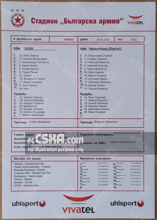 ЦСКА выиграл у Черноморец Бургас (Бургас) со счётом 3:0 в матче «А» футбольная группа 2007/08 сыгранный 4 Май 2008 г. в 18:00 ч. на стадионе „Болгарска армия“ в София. за армейцев отличился Florentin Petre (17′ и 27′ и 51′).