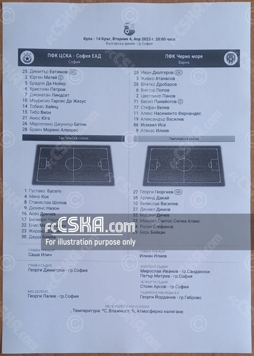 ЦСКА проиграла Черно море (Варна) со счётом 1:2 в матче Кубок Болгарии 2022/23 сыгранный 4 Апрель 2023 г. в 20:00 ч. на стадионе „Болгарска армия“ в София. Автогол - guests scored Влатко Дробаров[1] (93′).