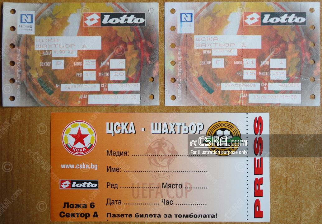 ЦСКА выиграл у Шахтёр (Донецк) со счётом 3:0 в матче Кубок УЕФА 2001/02 сыгранный 20 Сентябрь 2001 г. в 19:00 ч. на стадионе „Болгарска армия“ в София. за армейцев отличились Владимир Манчев (24′ и 78′) и Любослав Пенев (41′).
