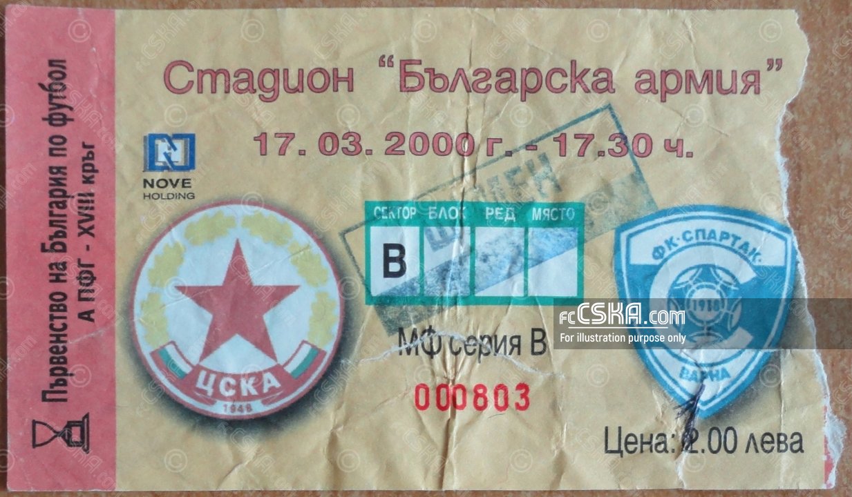 ЦСКА выиграл у Шумен (Шумен) со счётом 4:0 в матче «А» профессиональная футбольная группа 1999/00 сыгранный 6 Май 2000 г. в 20:15 ч. на стадионе „Болгарска армия“ в София. за армейцев отличились Владимир Манчев (3′), Димитр Бербатов (30′ from penalty и 86′ from penalty) и Станислав Петков (45′).