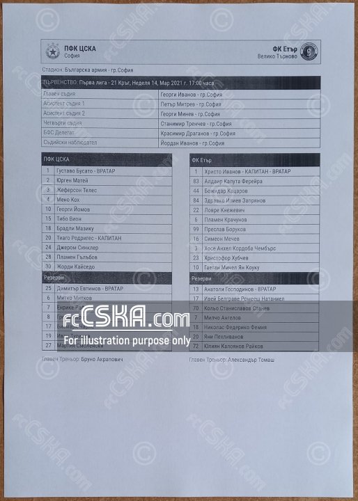 ЦСКА выиграл у Этыр ВТ (Велико Тырново) со счётом 1:0 в матче Первая профессиональная лига 2020/21 сыгранный 14 Март 2021 г. в 17:00 ч. на стадионе „Болгарска армия“ в София. за армейцев отличился Энрике (61′).