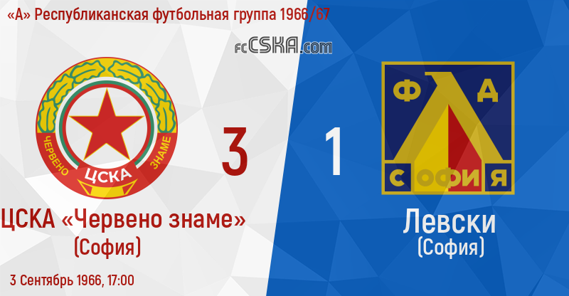 ЦСКА «Червено знаме» выиграл у Левски (София) со счётом 3:1 в матче «А» Республиканская футбольная группа 1966/67 сыгранный 3 Сентябрь 1966 г. в 17:00 ч. на стадионе „Васил Левски“ в София. за армейцев отличились Димитр Якимов (50′ и 61′) и Димитр Пенев (75′).