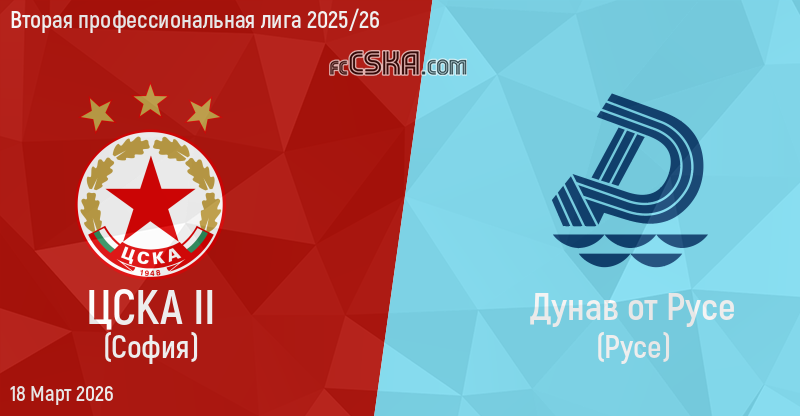 ЦСКА II будет играть с Дунав в матче Вторая профессиональная лига 2025/26 18 Март 2026 г.