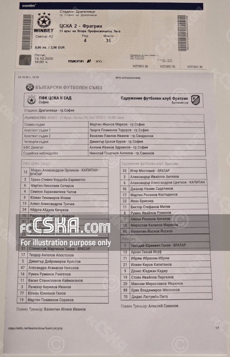 ЦСКА II выиграл у Фратрия (Бенковски) со счётом 1:0 в матче Вторая профессиональная лига 2025/26 сыгранный 24 Октябрь 2025 г. в 16:00 ч.