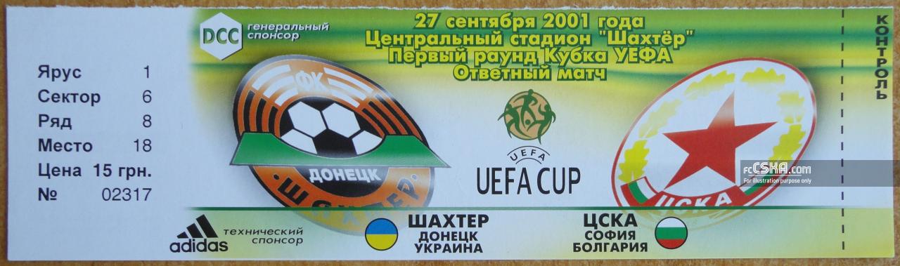 ЦСКА проиграла Шахтёр (Донецк) со счётом 2:1 в матче Кубок УЕФА 2001/02 сыгранный 27 Сентябрь 2001 г. в 19:00 ч. за армейцев отличился Методи Деянов (91′).