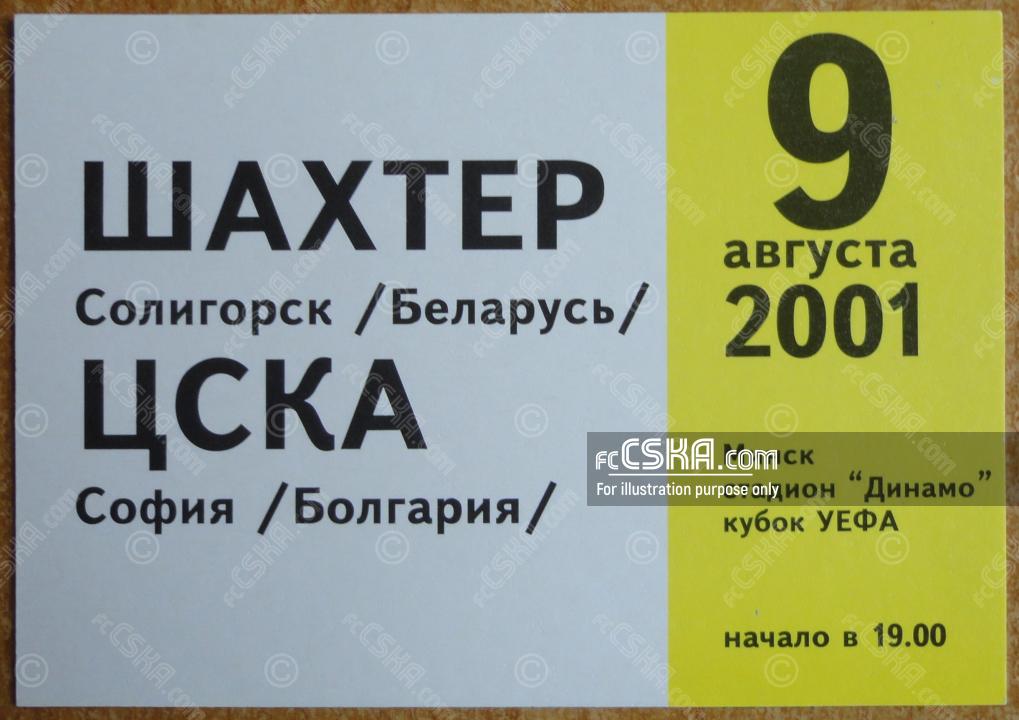 ЦСКА выиграл у Шахтёр (Солигорск) со счётом 1:2 в матче Кубок УЕФА 2001/02 сыгранный 9 Август 2001 г. в 20:00 ч. за армейцев отличились Владимир Манчев (65′) и Стефан Джильо (83′).