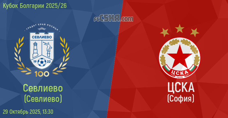 ЦСКА будет играть с Севлиево в матче Кубок Болгарии 2025/26 29 Октябрь 2025 г. в 13:30 ч. матч будет транслироваться в прямом эфире „Diema sport”.