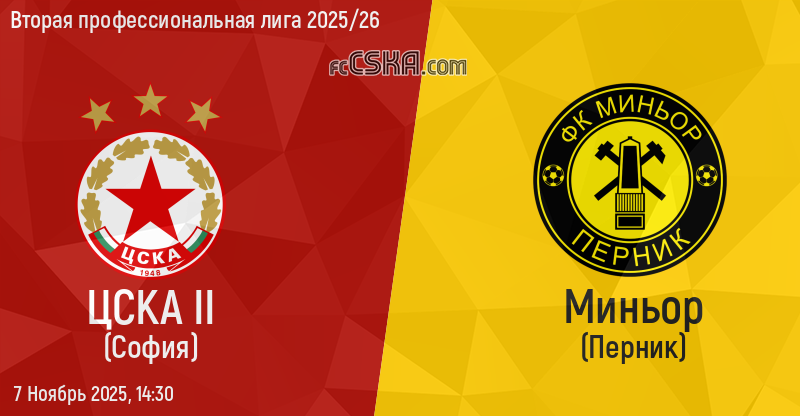 ЦСКА II будет играть с Миньор в матче Вторая профессиональная лига 2025/26 7 Ноябрь 2025 г. в 14:30 ч.