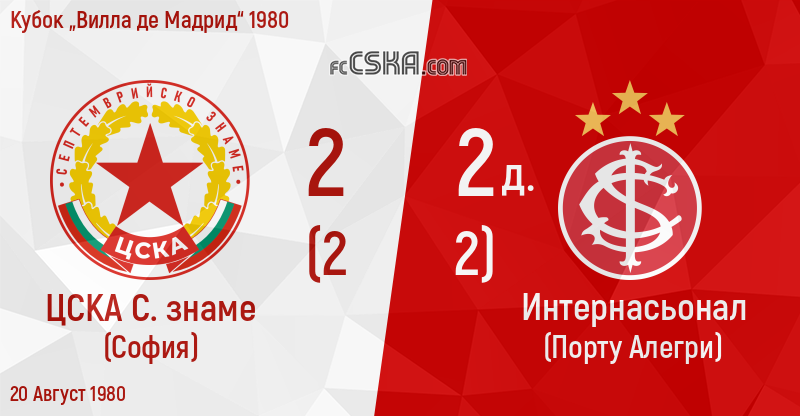 ЦСКА «Септемврийско знаме» сыграла вничью с фк Интернасьонал (Порту Алегри) со счётом 2:2 в матче Кубок „Вилла де Мадрид“ 1980 сыгранный 20 Август 1980 г. за армейцев отличились Спас Джевизов (17′), Георги Илиев - Майкъла (23′ и 95′ from penalty), Динко Димитров (95′ from penalty), Георги Велинов (95′ from penalty), Георги Димитров — Джеки (95′ from penalty), Марио Валков (95′ from penalty) и Никола Велков (95′ from penalty).