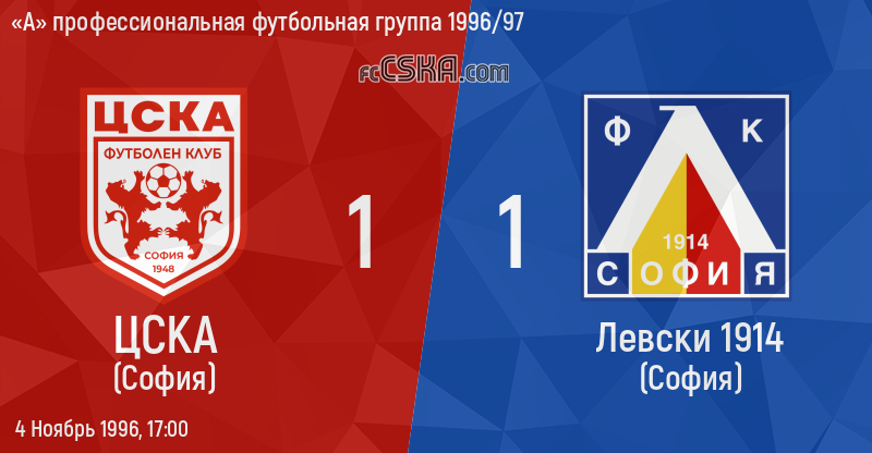 ЦСКА сыграла вничью с фк Левски 1914 (София) со счётом 1:1 в матче «А» профессиональная футбольная группа 1996/97 сыгранный 4 Ноябрь 1996 г. в 17:00 ч. на стадионе „Васил Левски“ в София. за армейцев отличился Димитр Иванов (45′).