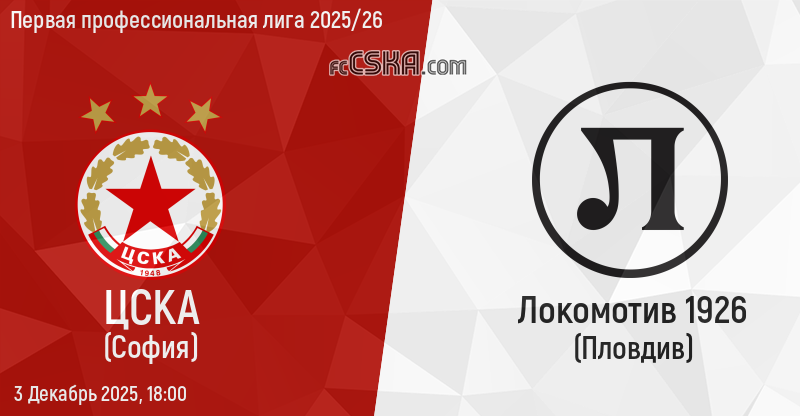 ЦСКА​ будет играть с Локомотив Пд в матче Первая профессиональная лига 2025/26 3 Декабрь 2025 г. в 18:00 ч. на стадионе „Васил Левски“ в София. матч будет транслироваться в прямом эфире „Diema sport”.