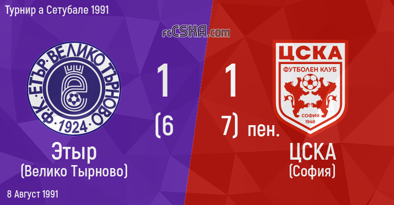 ЦСКА сыграла вничью с фк Этыр (Велико Тырново) со счётом 1:1 в матче Турнир а Сетубале 1991 сыгранный 8 Август 1991 г.